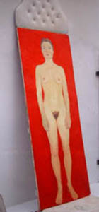 'Self Portrait with Bed Head' Oil on plaster on wood 12ft x 3ft |