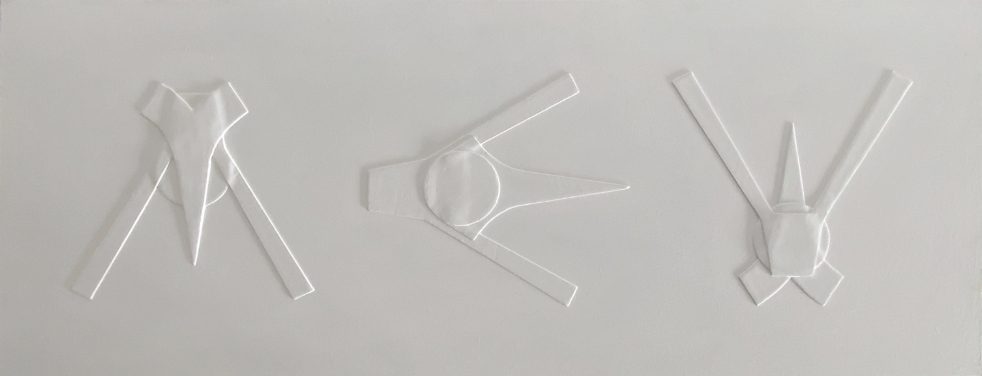 'Rock, Paper Scissors' Painted collage on MDF board 69 x 181cms |