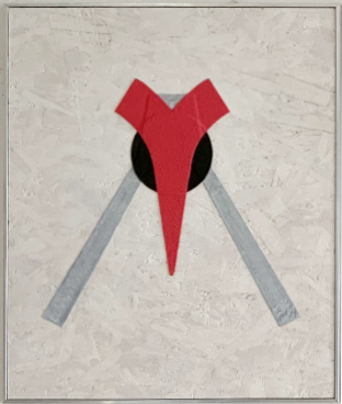 'Rock, Paper Scissors Triptych' Painted collage on OSB board 68.5 x188.5cms |