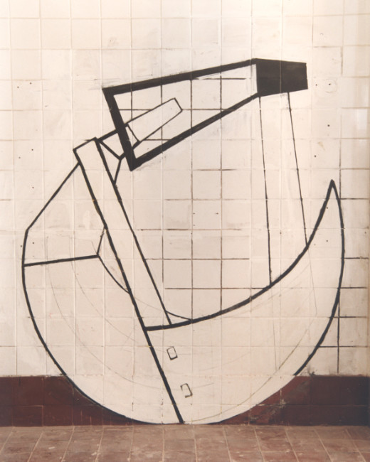 Studio drawing for 'The Lovers' Blackboard paint, emulsion and pencil on wall tiles 7ft x 6ft |